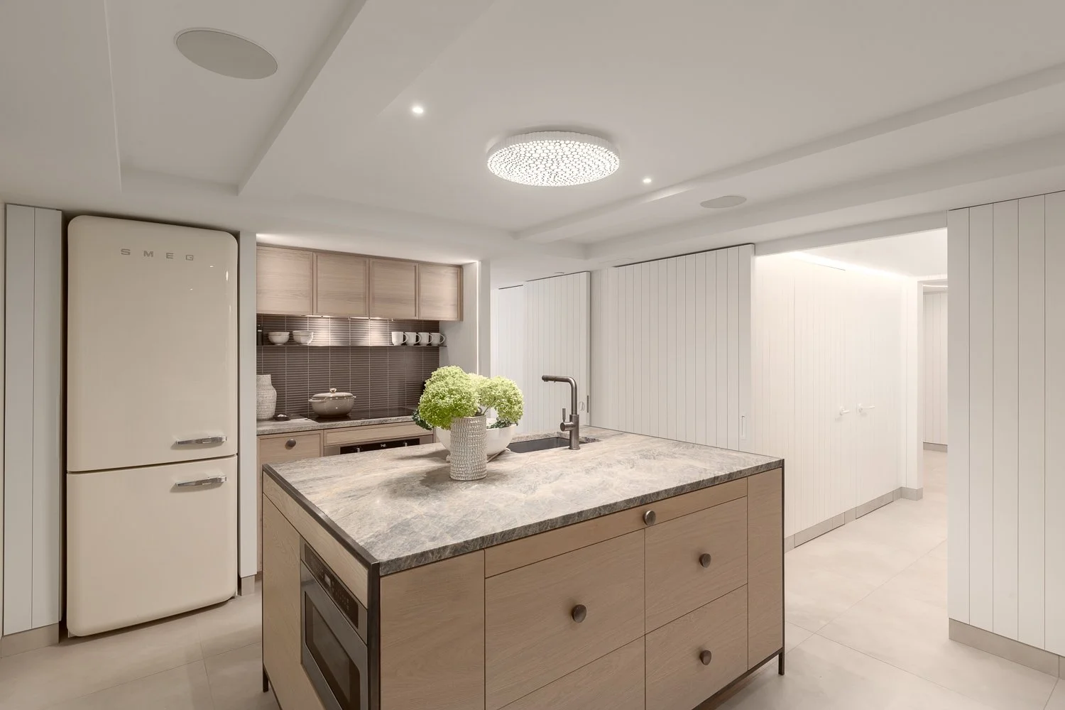 Instead of defaulting to stainless steel, we selected a slate-colored concrete sink for the kitchen. Its natural, tactile surface adds warmth and an organic element to the heart of the home.